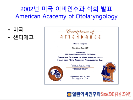 페이지 정보 2002년 미국 이비인후과 학회 발표 목록 본문 이한국원장님께서는 2002년에 열린 미국 이비인후과학회에 발표를 하였습니다. 이전글2004년 유럽 비과학회 발표 25.05.16 댓글 0 댓글목록 등록된 댓글이 없습니다.