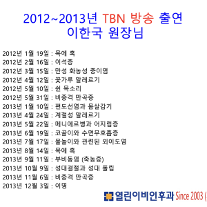 2012 ~ 2103년 TBN방송 출연