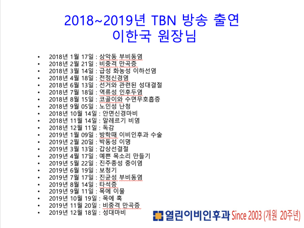 2018 ~ 2019년 TBN방송 출연